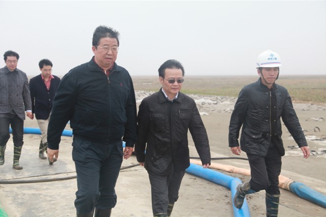 梁學忠董事長表示,徐立副秘書長一行深入條子泥匡圍工程現場,躬親踐行“三解三促”活動,是對我們工作的極大支持。條子泥匡圍工程是我省第一個嚴格按照基本建設規范實施的灘涂圍墾工程,一期工程于今年2月10日正式動工,目前主體工程已經完成,完成吹沙袋土方62萬方,占計劃的83%;完成堤芯沙土方72萬方,占計劃的50.7%;鋪設軟體排40.5萬平米,占計劃的135%,初步形成陸域面積3.3萬畝。目前,我們正在組織協調設計、施工、監理等參建單位以及相關科研院所,加強對條南片區龍口附近水文情況的勘測,對合龍方案進行深入研究和技術創新,計劃于5月中旬實現龍口合龍。我們將按照徐立副秘書長此次在條子泥匡圍工程“三解三促”活動中提出的要求,進一步統一思想,狠抓工作落實,全力推進條子泥工程建設,為全省沿海開發做出新的更大的貢獻,向省委、省政府交上一份完美滿意的答卷!