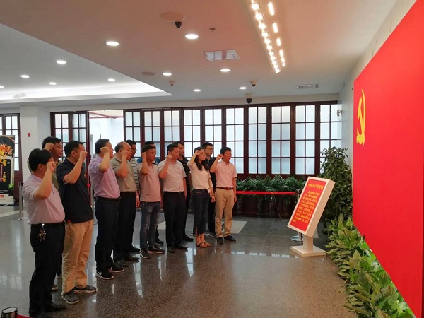 海北公司黨支部黨員參觀中共一大會址,面對黨旗再次宣誓。