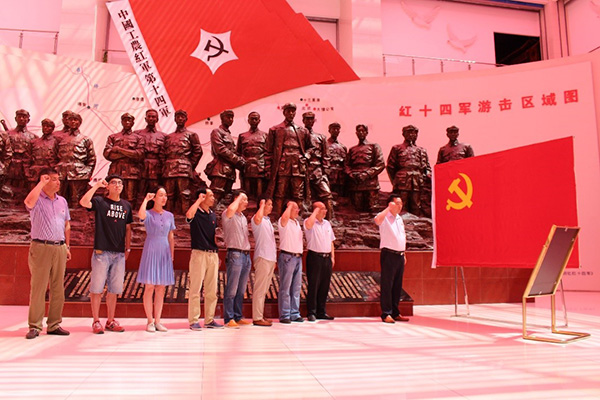 我們在紀念館中,重溫入黨誓詞,在黨旗下握緊拳頭,用真誠的心宣誓:為共產主義奮斗終生!
