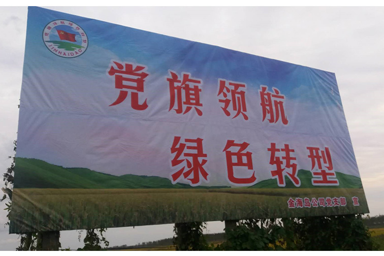 在黨建品牌設(shè)計(jì)時(shí),公司黨支部根據(jù)公司所處國(guó)家級(jí)自然保護(hù)區(qū)區(qū)位特點(diǎn)、所在地區(qū)綠色轉(zhuǎn)型發(fā)展思路和自身轉(zhuǎn)型發(fā)展工作要求,確立了“黨旗領(lǐng)航、綠色轉(zhuǎn)型”為公司黨建品牌名稱。黨建品牌標(biāo)識(shí)由黨旗、藍(lán)天、灘涂、JINHAIDAO(金海島)以及品牌名稱等元素組成。“黨旗”在“藍(lán)天”的映襯下,高高地飄揚(yáng)在綠灘涂上,寓示著黨旗引領(lǐng)金海島公司綠色轉(zhuǎn)型;“綠灘涂”與鹽城的“綠色轉(zhuǎn)型、綠色跨越”相一致,同時(shí)“綠”代表生態(tài)、代表高質(zhì)量、代表著希望;以“黨旗”為中心,寓意金海島公司圍繞中心抓黨建,抓好黨建促轉(zhuǎn)型,讓黨組織成為推動(dòng)企業(yè)發(fā)展的核心,讓黨員成為推動(dòng)企業(yè)發(fā)展的先鋒。