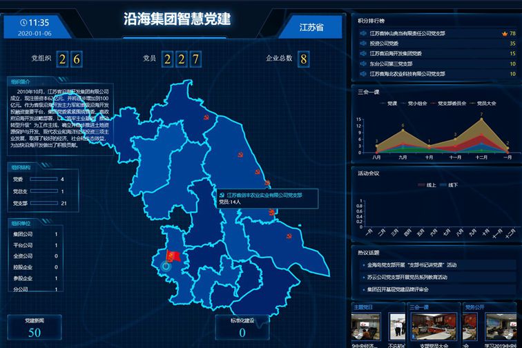 智慧黨建系統設置了黨組織管理、黨員管理、黨費繳納、組織關系、活動會議、學習管理、考核測評等功能模塊,日常的“三會一課”、黨組織關系轉接、發布通知公告、線上繳納黨費等功能可“一鍵直達”,為廣大黨員參與學習教育、黨務工作者開展日常工作提供了極大的便利。