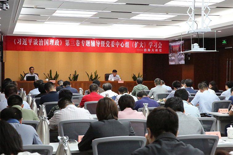 9月14日,省沿海集團黨委舉辦《習近平談治國理政》第三卷專題輔導會暨黨委中心組(擴大)學習會,聽取省委黨校教授李建柱關(guān)于深入學習貫徹《習近平談治國理政》第三卷的專題輔導報告。集團黨委書記、董事長鄧東升主持會議。集團領(lǐng)導班子成員,本部各部門、所屬企業(yè)黨員干部職工共360余人參加了專題輔導會。