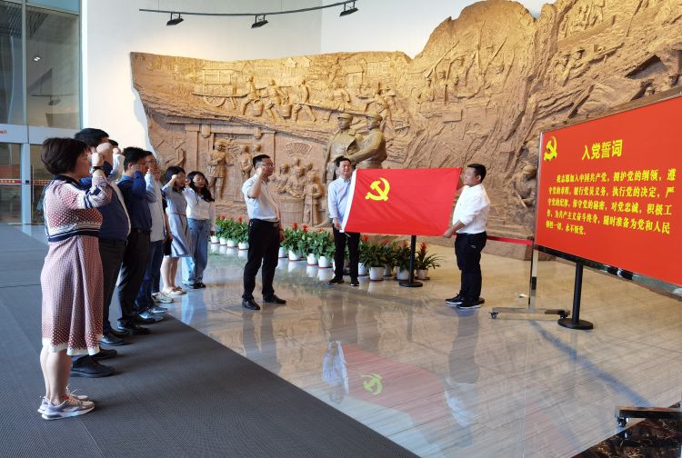 在黃橋戰(zhàn)役紀(jì)念館,全體黨員在黨旗前莊嚴(yán)地舉起右拳,重溫入黨誓詞,向黨表示自己的堅(jiān)定政治信念,深切感悟作為一個(gè)共產(chǎn)黨人不能忘記的“初心”和必須牢記的“使命”。宣誓結(jié)束后,全體黨員參觀了紀(jì)念館,觀看歷史圖片、文物,一邊細(xì)看文物史料,一邊聆聽(tīng)講解,學(xué)習(xí)黃橋戰(zhàn)役的歷史和精神。展館內(nèi),每一張浸透著革命歷史的老照片、每一幅真實(shí)場(chǎng)景的再現(xiàn)、每一段可歌可泣的紅色故事,都震撼著在場(chǎng)黨員同志的內(nèi)心。