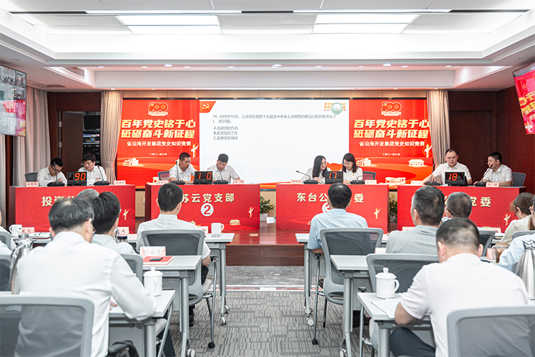 為進一步豐富黨史學習教育內容,深情回顧黨的光輝歷程,激勵集團廣大干部員工賡續紅色基因、傳承優良傳統,營造學黨史、知黨情、跟黨走的濃厚氛圍,2021年6月18日上午,省沿海集團組織開展“百年黨史銘于心 砥礪奮斗新征程”黨史知識競賽活動。集團領導班子成員、本部各部門負責人、各基層黨組織書記以及本部全體黨員在主會場參加活動。所屬企業設立分會場,通過視頻會議系統觀看。