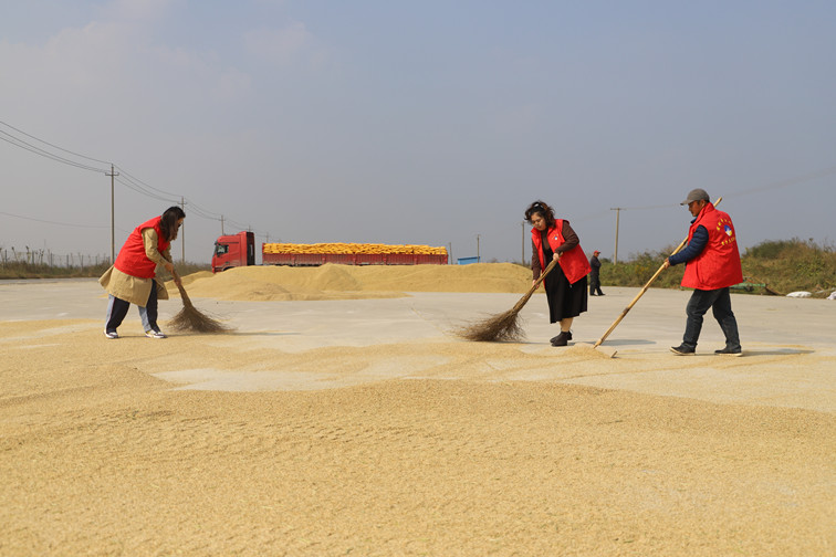 “春種一粒粟,秋收萬顆子?!睋屖罩?,全體黨員干部沖鋒在前,發揚不怕苦、不怕累、連續作戰的精神,有的在田頭檢查收割質量,有的在場頭測量水分,有的在磅房過磅,有的在南北場巡查,有的在烘干廠值班......各項工作有條不紊地進行著。陽光下、深夜里,金黃的稻谷和黨員志愿者揮汗如雨、滿身塵土忙碌的身影,構成了一幅稻谷豐收、黨群情深的美麗畫卷。