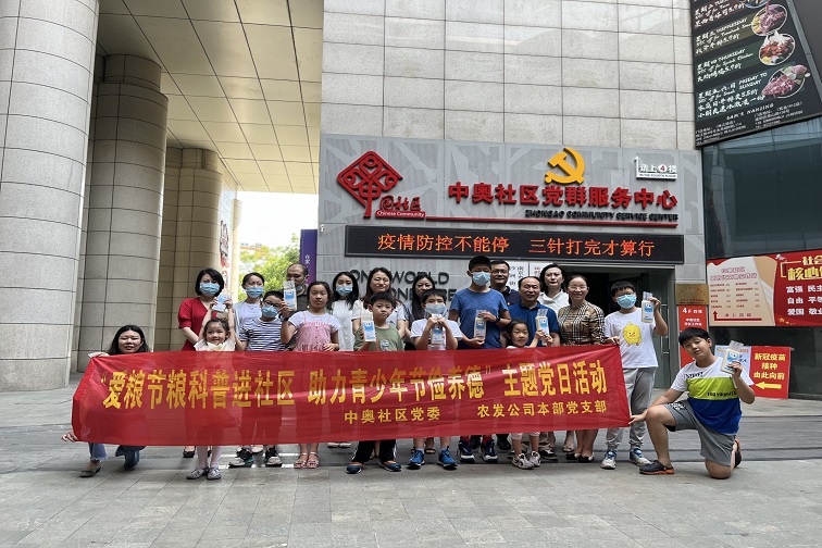 為鞏固拓展黨史學(xué)習(xí)教育成果,賡續(xù)紅色血脈,弘揚(yáng)優(yōu)良傳統(tǒng),8月9日下午,省沿海農(nóng)發(fā)公司本部黨支部聯(lián)合建鄴區(qū)中奧社區(qū)開展了“愛糧節(jié)糧科普進(jìn)社區(qū) 助力青少年節(jié)儉養(yǎng)德”主題黨日活動(dòng)。農(nóng)發(fā)公司本部黨支部黨員、發(fā)展對象、積極分子及志愿者參加活動(dòng)。