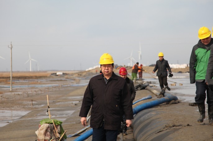 2012年2月29日,省沿海辦主任,省沿海開發集團董事長、黨委書記梁學忠由北至南全線視察了條子泥項目現場,查看了工程進展情況,并對現場管理及下一步主要工程安排做了具體部署。