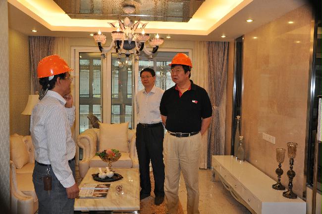 在參觀樣板間和銷售展示區過程中,梁董事長詳細了解了項目定位、工程進度和銷售進展等,并就開發銷售中存在的問題提出了指導意見。他指出,要認真研究當前市場形勢,準確把握項目定位,不斷提升項目品質,提升項目性價比,提高市場美譽度,確保順利完成年初制定的銷售目標任務。梁董事長強調,一是交付為重。要把工程驗收交付作為當前首要工作來抓,科學合理地安排項目工期,根據項目節點工期目標,倒排工期,加強交叉工程的協調建設,加快后續工程的開發進度,提高開發效率;要強化質量管理和工期責任制的落實,經營班子要實行風險責任抵押,確保按期交房。二是銷售為先。今年是項目銷售的關鍵年,要及時總結前期的銷售經驗,加大營銷力度,創新營銷方式,突出項目的區位、品質等優勢,提高成交率;要綜合分析當地的市場特點和客戶定位,制定并完善銷售計劃,以客戶需求為本,以細節體現品質,以服務贏得市場,確保完成全年銷售目標。三是成本為要。要重視項目的成本控制,落實精細化的管理要求,在工程設計、物資采購、銷售推廣等環節深入挖掘降低成本的途徑,嚴格控制開發成本,避免不必要的浪費,提高項目的操盤水平和盈利空間。