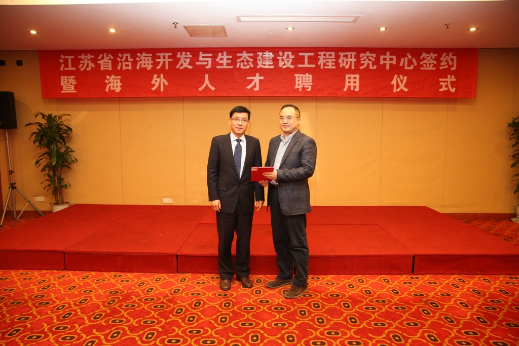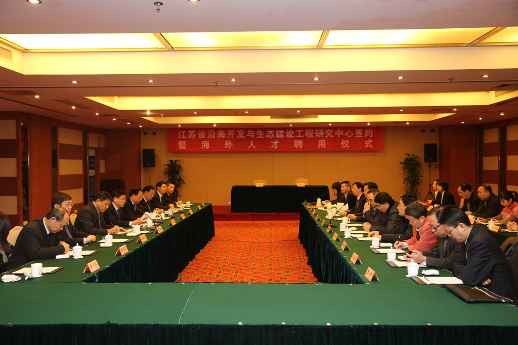 12月17日上午,集團公司與河海大學聯合舉行了江蘇省沿海開發與生態建設工程研究中心簽約暨海外人才聘用儀式。省委組織部干部四處處長董德,河海大學校長徐輝、副校長唐洪武、海外專家代表李凌,集團董事長鄧東升、總經理丁建奇、副總經理唐正東,黨委委員、東臺公司總經理周金陽以及省國資委監事席寧等出席儀式。儀式由丁建奇總經理主持。