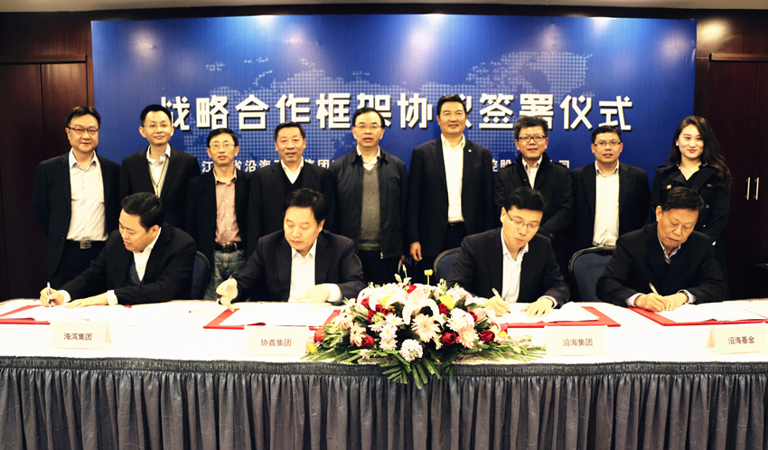 2016年4月6日,江蘇省沿海開發(fā)集團(tuán)有限公司、協(xié)鑫(集團(tuán))控股有限公司、江蘇沿海產(chǎn)業(yè)投資基金以及江蘇海濱投資集團(tuán)有限公司在寧正式簽署《戰(zhàn)略合作框架協(xié)議》。集團(tuán)公司董事長鄧東升出席儀式并代表集團(tuán)公司簽約。集團(tuán)公司總經(jīng)理丁建奇、副總經(jīng)理姜凱、總經(jīng)理助理徐向紅出席儀式。協(xié)鑫集團(tuán)董事長朱共山、沿海基金執(zhí)行事務(wù)合伙人委派代表徐錦榮、海濱投資董事長許興祥代表各自企業(yè)出席簽約。
