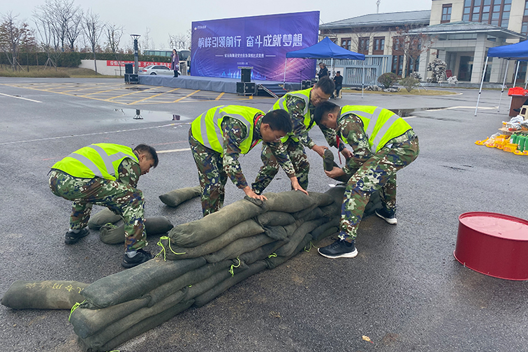 安全應急演練比武競賽同樣如火如荼,比賽分為接力滅火項目和防臺風防汛項目,來自沿海片區基層企業的7支代表隊共計35名選手參加了比賽。在接力滅火環節,參賽選手從起點正確穿戴防煙面罩,手持滅火器疾奔模擬著火點,在適當距離對火苗進行徹底撲滅,整個過程一氣呵成,配合默契。防臺風防汛項目針對所屬企業地處沿海地區易遇臺風暴雨等惡劣天氣發生潰壩、倒塘的實際情況,模擬突發事件,要求各單位第一時間分析響應險情,并依據已制定的防臺風防汛應急預案進行全過程演練,進一步提升各單位應對突發情況的快速處置能力和安全防范意識。在緊張激烈的角逐下,農發金東臺分公司、農發大豐分公司、東臺公司獲得接力滅火項目前三名,倉東公司、東臺公司、農發大豐分公司獲得防臺風防汛項目前三名。