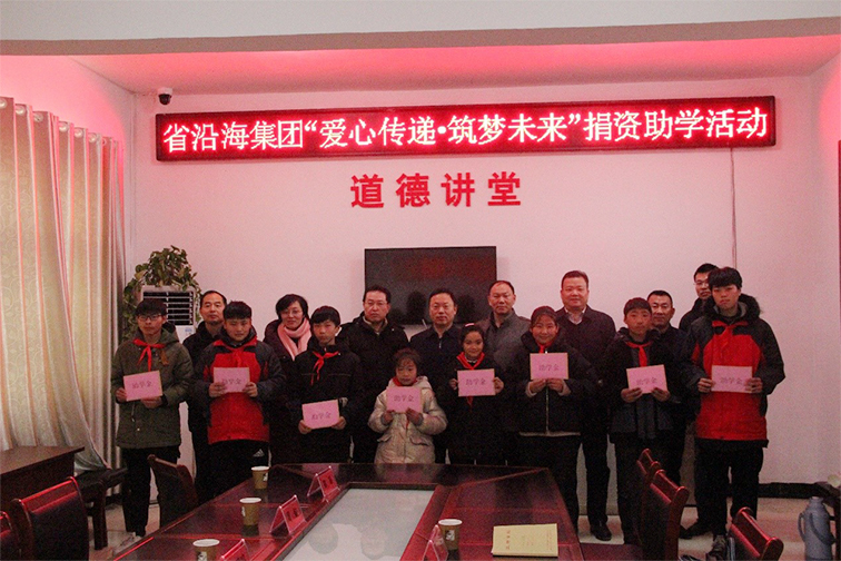 歲暮冬寒,愛心送暖。1月12日,省沿海集團組織開展2021年度“愛心傳遞·筑夢未來”捐資助學活動。集團系統廣大干部員工積極響應、踴躍參與、自愿捐款、爭獻愛心,共募捐愛心款6.6萬元,所籌善款將用于幫扶灌云縣圩豐鎮東圩村貧困學生和困難家庭。1月15日,集團公司在灌云縣圩豐鎮東圩村村部舉辦簡樸的捐資助學儀式,集團公司副總經理田鎖慶出席儀式并代表集團系統全體干部員工向東圩村受助學生發放助學金。
