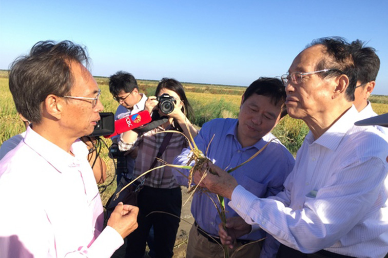 條子泥墾區(qū)是2009年我省沿海開發(fā)上升為國家戰(zhàn)略后進行匡圍的重點工程,于2014年完工,隨即進行開發(fā)配套建設(shè),于去年基本完成。據(jù)介紹,條子泥條北墾區(qū)首次大面積種植7230畝水稻,是由沿海集團下屬江蘇省沿海開發(fā)(東臺)公司和鹽城師范學院江蘇灘涂生物農(nóng)業(yè)協(xié)同創(chuàng)新中心、江蘇省鹽土生物資源研究重點實驗室、南京北盛榮能源科技有限公司共同開發(fā)。與以往鹽堿地改良先養(yǎng)七八年魚,再進行水稻種植不同,這片處女地頭年直接播種水稻。眼下開鐮在即,鹽城市農(nóng)科院技術(shù)人員對其中18個田塊進行測產(chǎn),理論畝產(chǎn)523.3公斤,其中408號田理論單產(chǎn)高達737.5公斤,達到每公頃10.5噸的“超高產(chǎn)”指標。以凌啟鴻為主任委員的專家組對水稻進行測產(chǎn)核驗,認為“數(shù)據(jù)與所在田水稻實際情況甚為符合”。