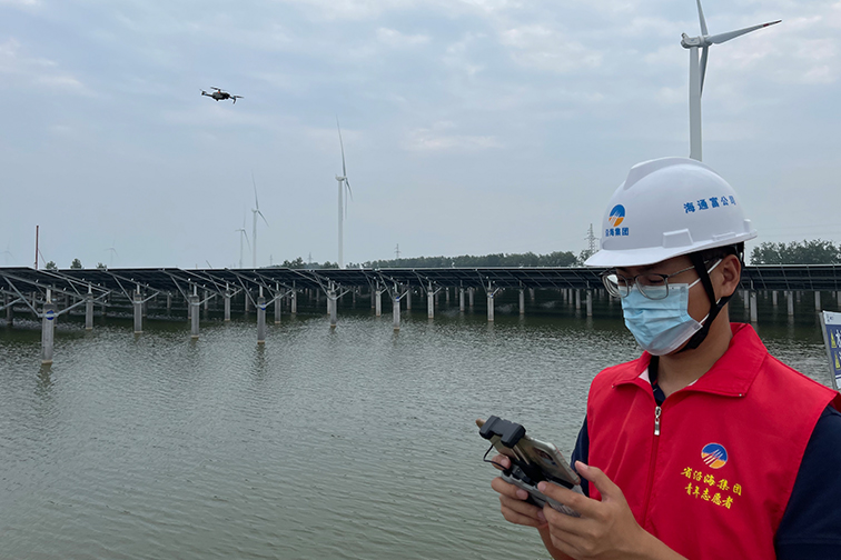 湛藍(lán)的光伏板整齊劃一鋪展開(kāi)來(lái),這里是連云港灌云縣洋橋漁光項(xiàng)目現(xiàn)場(chǎng),工程占地三千余畝,塘梗岸線(xiàn)全長(zhǎng)約一萬(wàn)六千米,項(xiàng)目已經(jīng)安全運(yùn)營(yíng)5個(gè)月,在工程管理部楊維新看來(lái),“生產(chǎn)安全”始終是第一準(zhǔn)則。面對(duì)安全巡檢有困難的實(shí)際,楊維新創(chuàng)新安全監(jiān)督方式,利用無(wú)人機(jī)擔(dān)任空中“執(zhí)法員”精準(zhǔn)定位,更全面地巡查施工作業(yè)現(xiàn)場(chǎng),同時(shí)協(xié)同監(jiān)理、安全管理人員完成線(xiàn)下安全隱患排查治理,安全監(jiān)管閉環(huán)管理。“無(wú)人機(jī)+”將安全巡檢時(shí)間從原先一小時(shí)縮減至十分鐘,極大提高了安全巡檢效率,同時(shí)也減少了管理成本。