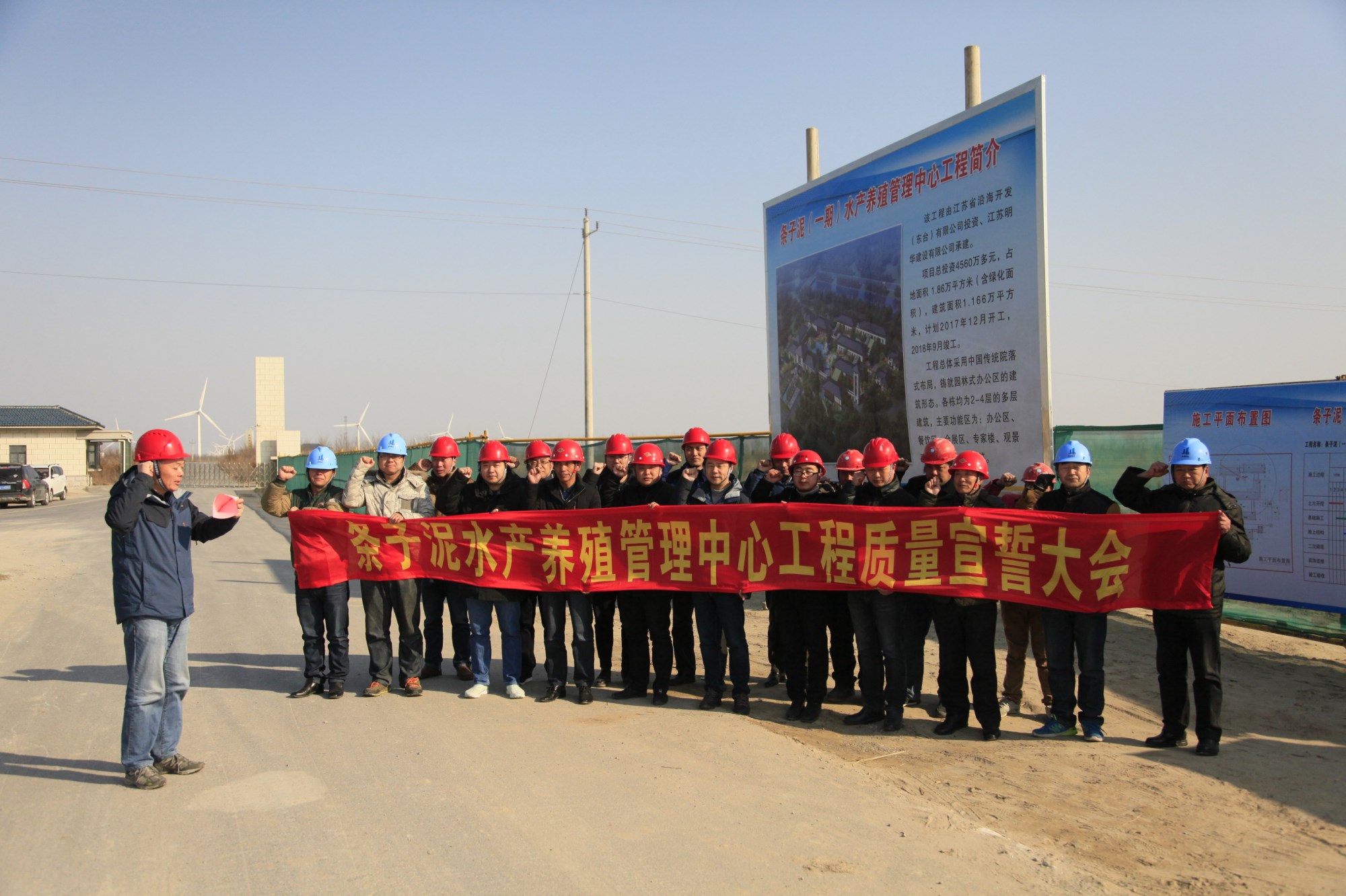 2018年2月7日,為進一步強化質量意識,鑄就精品工程,東臺公司組織開展條子泥水產養殖管理中心工程質量宣誓活動。常務副總經理王海祥帶領公司領導班子、項目管理人員和各參建單位現場負責人、施工班組長一起鄭重宣誓:在條子泥水產養殖管理中心項目建設中,牢記質量標準,明確質量目標,規范質量管理,嚴格質量控制。杜絕不良材料進入工程,保證工程不出次品,不留隱患,以實際行動確保工程質量優良。
