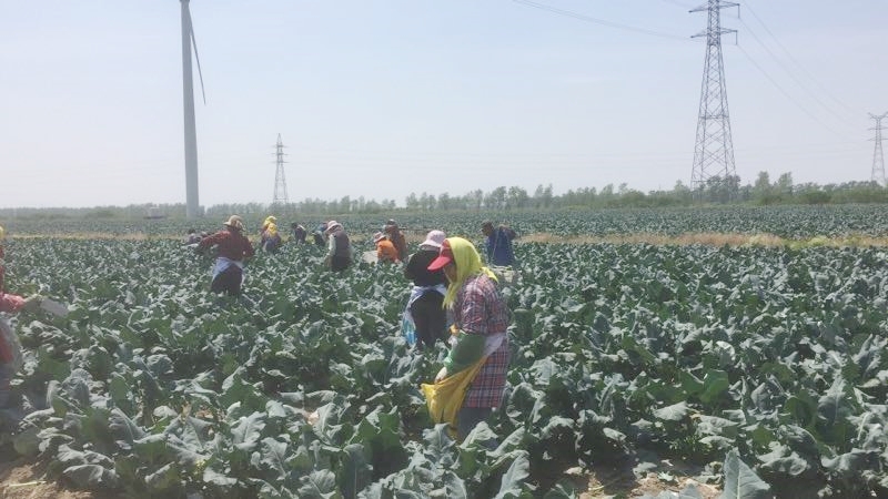 初夏伊始,連續33度以上的高溫已席卷了凌洋大地。走入凌洋西蘭花田間,熱浪滾滾。在一片翠綠間,工人們正辛勤的采摘著西蘭花。