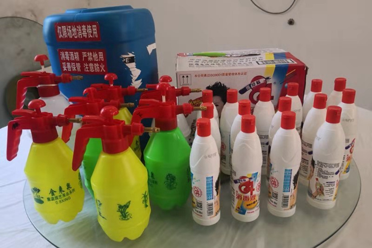 在防疫物資稀缺緊張的情況下,經黨員干部多方協調,采購口罩300多個、消毒液20多瓶、消毒酒精50斤、紅外線測溫儀2臺、體溫計2支、大噴壺10個、小噴壺20個、個人用噴霧器50個等,相關物品分發至辦公區、生產區、食堂等區域值班人員。不少黨員干部還自費購買口罩、消毒液等物資,用實際行動支援抗疫行動。
