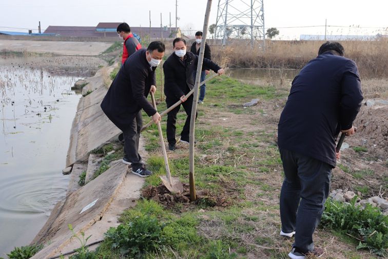 三月春風怡人,當天暖陽當空,大家在嚴格做好個人防護的同時,紛紛拿起鐵鍬、鋤頭等工具,有的揮鍬鏟土,有的栽植澆灌,認真完成樹苗栽植的每一道工序。經(jīng)過1個多小時的勞動,一排女貞樹、水蜜桃樹、碭山梨樹、杏樹等迎風傲立。看著親手栽下的樹苗,大家臉上洋溢著勞動的喜悅。