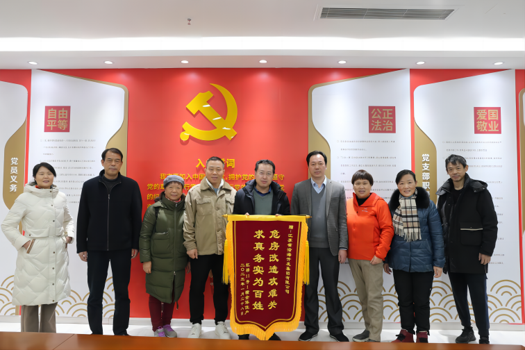 1月29日上午,虹橋11號一村住戶向集團公司送來了一面錦旗和一封感謝信,感謝集團公司在虹橋11號一村危房翻建消險期間迎難而上、上下溝通、多方協調,全力推動工程順利竣工并如期交付,集團分管領導代表公司接受了錦旗并與居民代表合影留念。