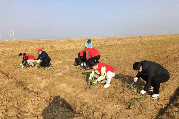 2023年射陽分公司布局了2000余畝油菜,由于位置偏北緯度偏高,越冬期間遭遇了長時間的低溫天氣,導致部分田塊油菜基本苗不足。為降低災害損失,射陽分公司主動到周邊農場請教學習,并邀請農業技術專家實地指導,提出移栽補苗的技術措施。3月初,公司號召全體員工參與油菜移栽補苗活動,黨員先鋒隊和青年突擊隊成員帶頭深入大隊田間地頭,現場8人一隊、2人一組,大家發揚“干一行愛一行、專一行精一行”的敬業精神,齊心協力完成了20余畝油菜移栽補苗工作。